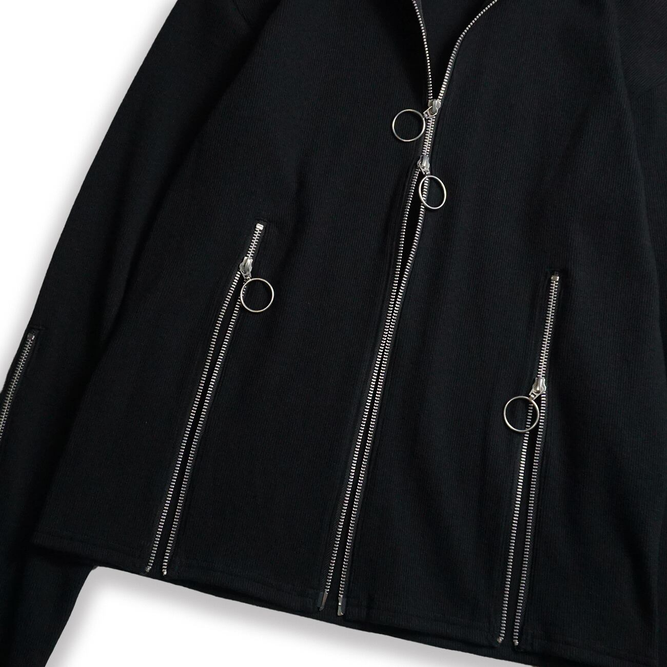 リブ編み生地を使用したタイトフィットなトラックトップス。