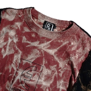 Tシャツ2枚を繋ぎ合わせ全体に大胆なブリーチ加工を施した1着。